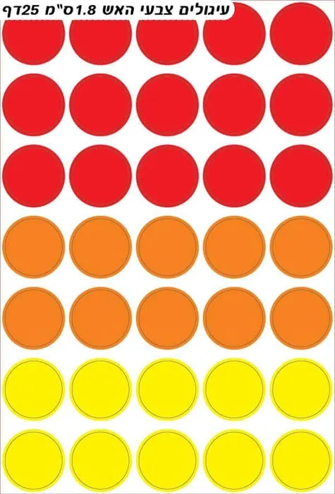 מדבקות עגולות צבעי אש. 15 דף