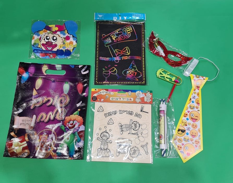 קיט פורים! מה כולל בשקית ההפתעות יצירת מובייל יצירת מניפה דף הקסם עניבה רעשן מסיכה ומגילת אסתר מגיע ארוז אחד ואישי לכל ילד