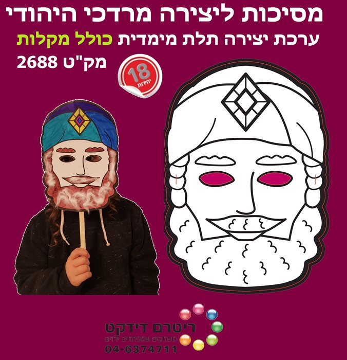 18 מסכות מרדכי היהודי ליצירה כולל מקלות
