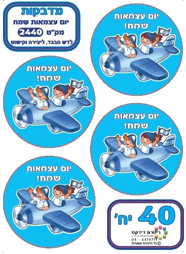מדבקות 10 דפים יו עצמאות שמח - ילדים במטוס