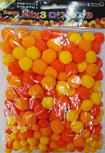 פונפונים גוונים כתומים מיקס 3 גדלים - 300 יחי