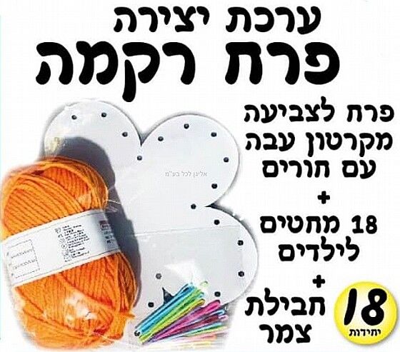ערכת יצירה רקמה 18 יחי' +מחטי סריגה + 50 גרם צמר