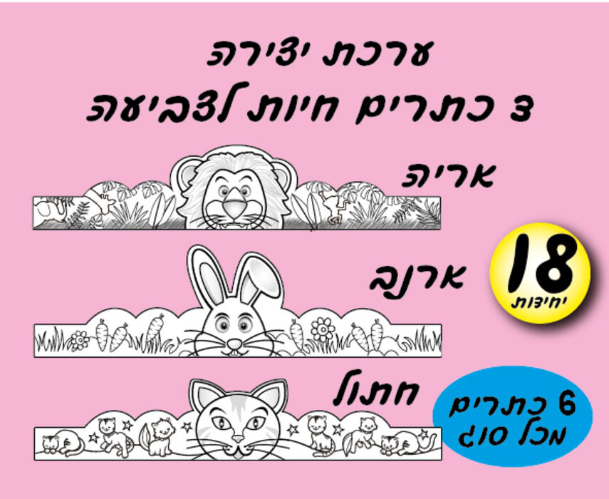 כתרים חיות לצביעה-18 יחי ( 6 מכל סוג )