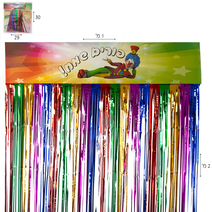 וילון פרנזים צבעוני - פורים שמח 1X2 מטר