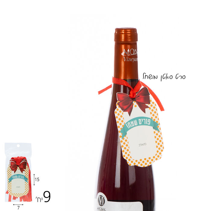 תווית פורים שמח לקישוט ואריזה עם חוט סאטן 9 יחי