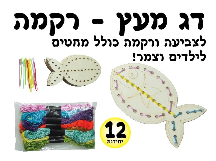 דג מעץ רקמה 12 יחידות