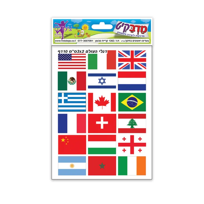 מדבקות דגלי-עולם 10 דף