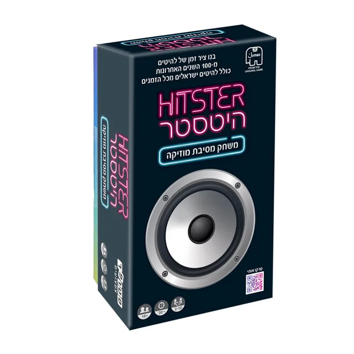 תרימו מסיבה עם היטסר! האזינו ללהיטים מטורפים של 100 השנים האחרונות כולל להיטים ישראליים, סדרו את השירים בציר הזמן שלכם לפי שנת יציאת השיר למיטב זכרונכם – השחקן הראשון שאוסף 10 כרטיסים זוכה בתואר היטסטר! אז איך משחקים? הדיג'י מנגן שיר- בוחרים כרטיס, סורקים עם אפליקציית היטסטר והשיר יתנגן אוטומטית דרך ספוטיפיי ממקמים את כרטיס המוזיקה- מנחשים מתי יצא השיר ומניחים את הכרטיס במקום הנכון בציר הזמן הופכים את כרטיס המוזיקה- אם צדקתם שימרו את הכרטיס כדי לבנות את ציר הזמן שלכם. גודל אריזה: רוחב 12 ס"מ, אורך 20 ס"מ עומק 7 ס"מ.