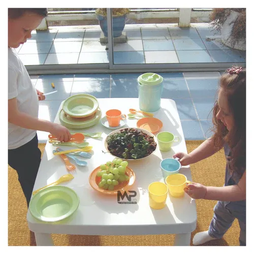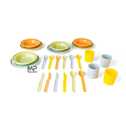 הסט מיוצר כחלק מקו הייצור האקולוגי ועשוי מקנה סוכר טבעיים וידידותי לסביבה. לאחר השימוש של הילדים ניתן להכניס את הכלים למדיח
