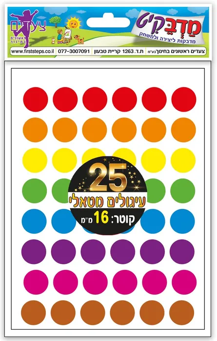 מדבקות עיגולים מטאלי 25 דף קוטר 16 מ"מ