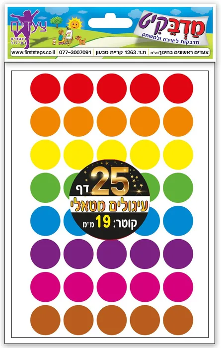 מדבקות עיגולים מטאלי 25 דף קוטר 19 מ"מ