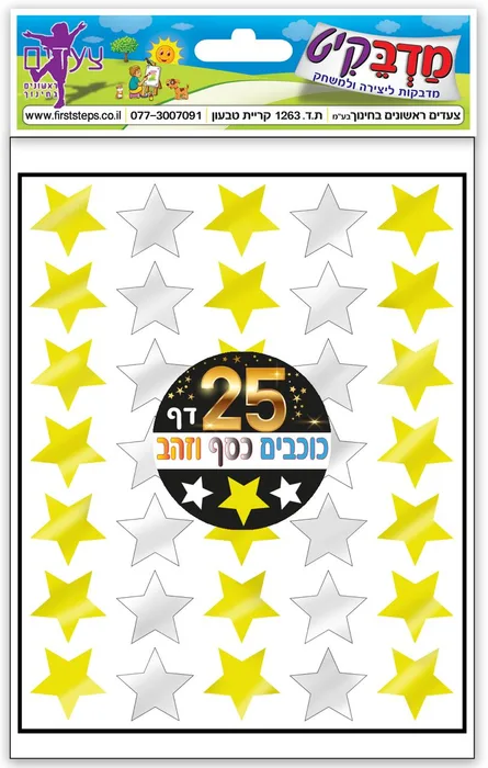 מדבקות כוכבים כסף וזהב 25 דף
